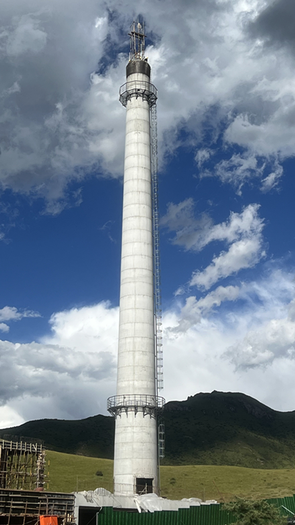 熱烈祝賀郎木寺新城供暖一期60米煙囪喜封金頂